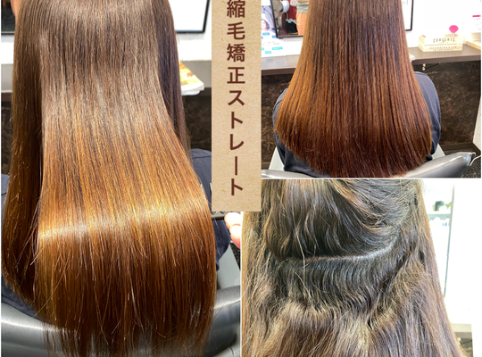 そのような髪質は『縮毛矯正』が綺麗に矯正してくれ、すごく柔らかい髪質に仕上がります◎